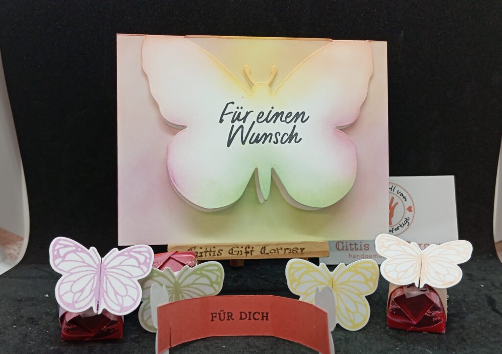 Was für eine schöne Idee! Ich finde es toll, kleine Aufmerksamkeiten zu basteln – es braucht nicht viel, um jemandem eine Freude zu machen. Besonders die Schmetterlingsverpackungen gefallen mir, weil sie so simpel und doch so liebevoll gestaltet sind. Die Technik mit der Stanzform ist echt praktisch, das werde ich mir merken! Gerade jetzt, wo ich für eine liebe Freundin nach einer kleinen Überraschung suche, kommt diese Inspiration genau richtig. Sie hatte nämlich einen Augeneingriff und die Augenärzte meinten, dass sie sich unbedingt ausruhen soll, weshalb ich sie etwas aufmuntern möchte. Ich freue mich schon darauf, es selbst auszuprobieren! 😊