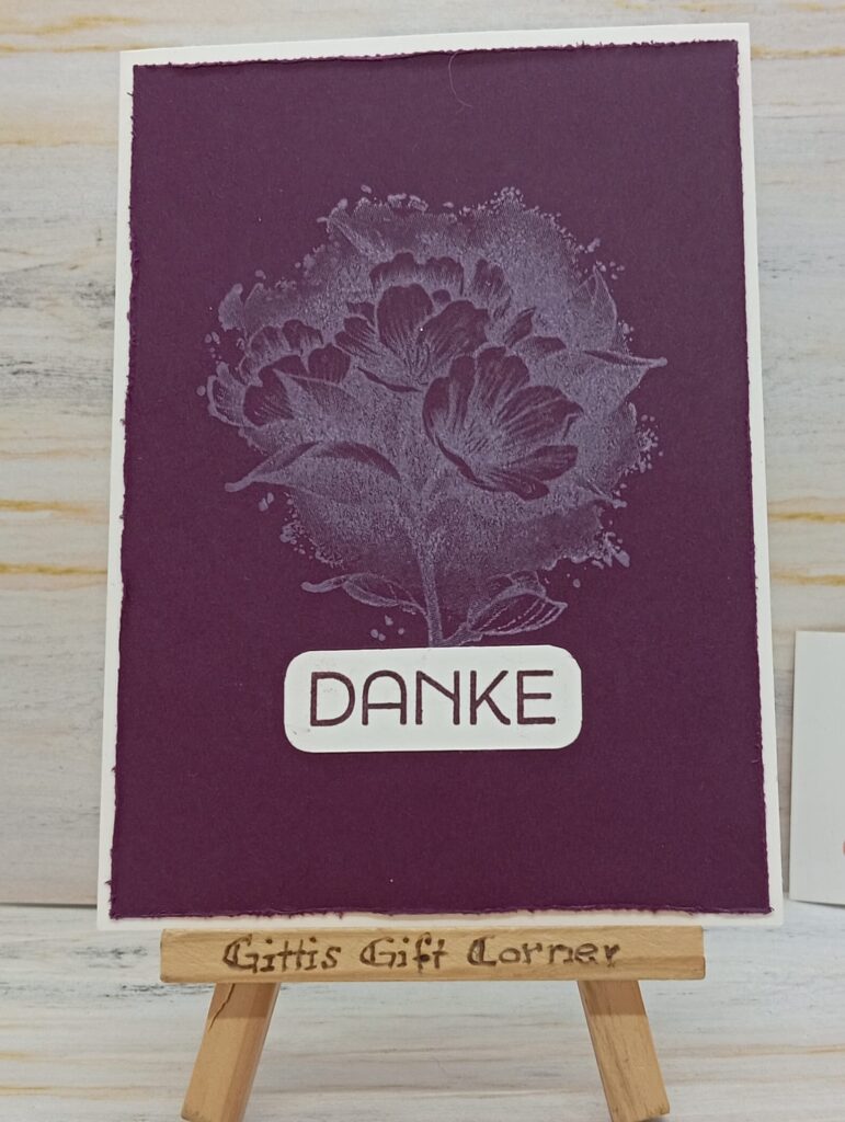 bei dieser Karte habe ich einen Stempel aus dem Set Vintage Blüten verwendet. Dieser Stempel stempelt nicht satt flächig ab, sondern hat eine „gebrochene“ Oberfläche und das macht den Charme dieses Stempels aus wie ich finde.